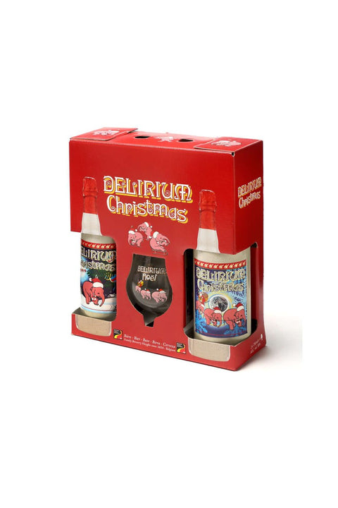 Two 75cl Delirium beers with a Delirium Glass to enjoy your beers out of. Perfect Christmas present for that Delirium lover.