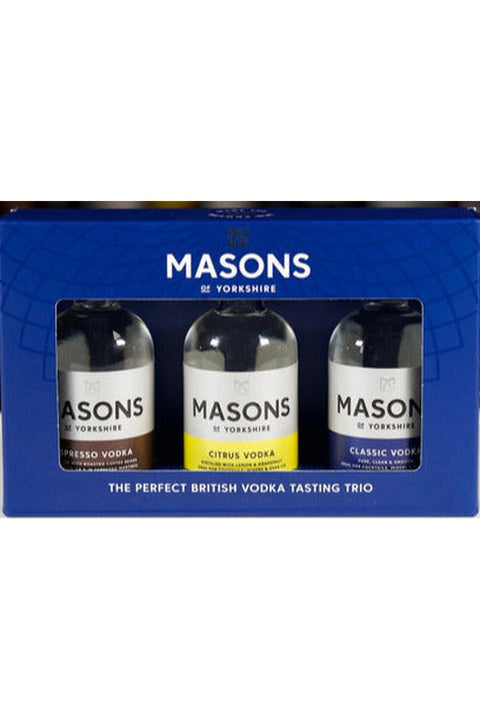 Our Masons Vodka Gift Set bundle includes all three of our original Vodkas: Classic Vodka, Espresso Vodka & Citrus Vodka, now in a 5cl miniatures tasting set. It's ideal to explore the flavour, clarity and smoothness our Vodkas have won awards for. Perfect as a gift set to treat a vodka lover.